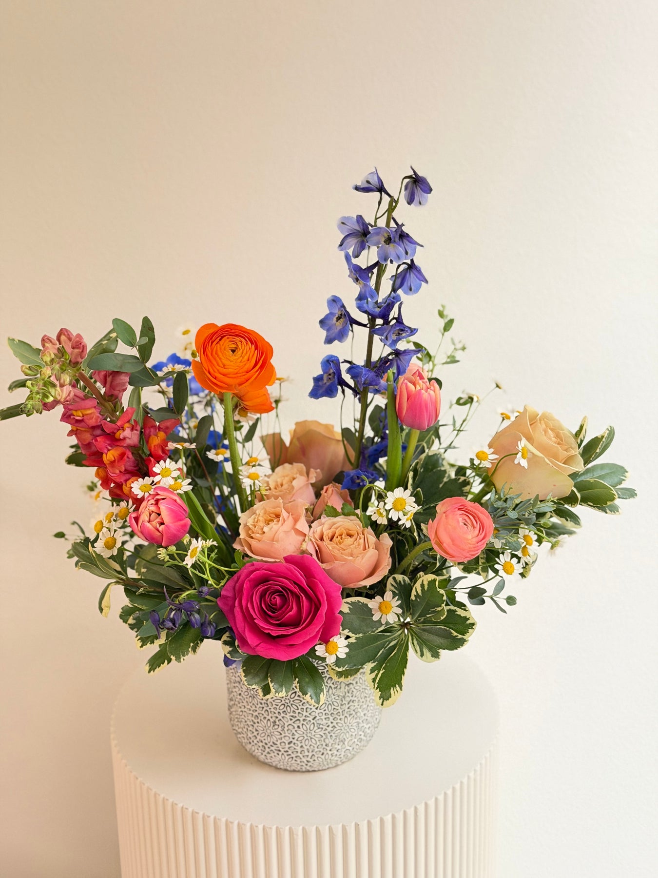 Special flower requests can be made, but are subject to availability and cannot be guaranteed. Peonies will only be included at an additional charge. If you would like a Peony (or 5!) added to your arrangement, you must add the "Peony Add On" to your cart prior to check out!