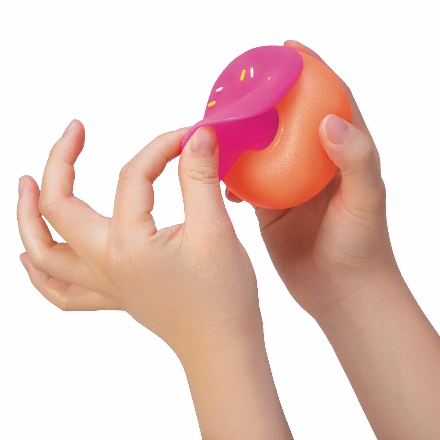 NeeDoh Dohnut feeds your need for squish. These tactile additions to the NeeDoh family are stretchy squishy takes on the tasty sweet treat. NeeDoh Dohnuts come in an assortment of 3 neon-colored dohnuts with nine different frosting styles, packing that classic NeeDoh squish. Easily pop and swap these delectable dohnut decorations and make your own groovy masterpiece!