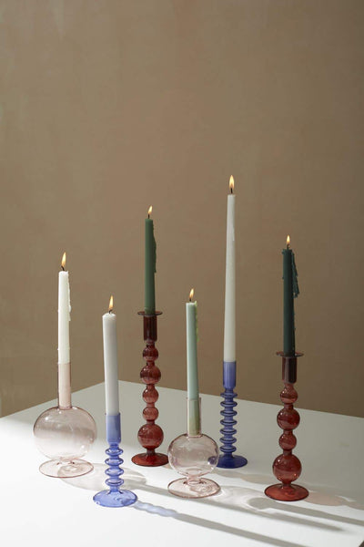 With a playful shape & clean sophistication, the glass Malaga Single Bubble Candleholder offers an uncommon elegance with its muted rose hue. Lightweight & designed for a standard taper candle, this piece is lovely paired with other Malaga styles.